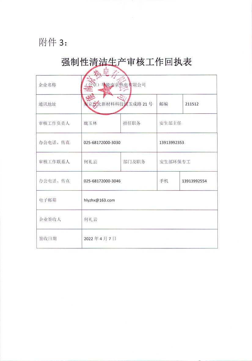 華能南京熱電有限公司清潔生產(chǎn)審核信息公示